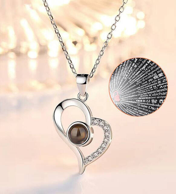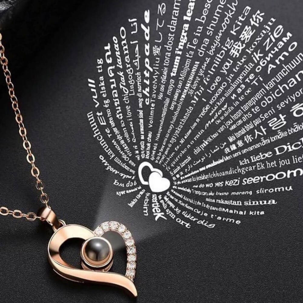 - Kolyemizin orta kısmında bulunan özenle hazırlanmış taş içerisinde 100 farklı dilde seni seviyorum yazısı bulunmaktadır.
