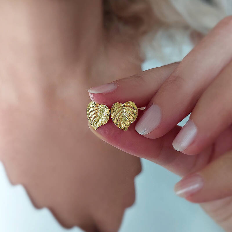 925 Ayar Gümüş Dokulu Yaprak Küpe