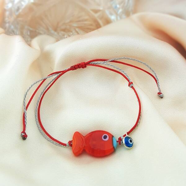 Vaoov 925 Ayar Gümüş Nazarlı Kırmızı Balık Bileklik