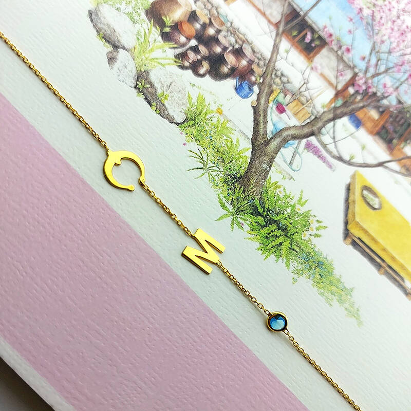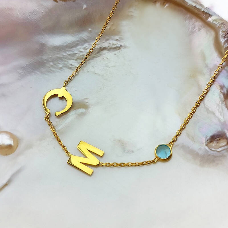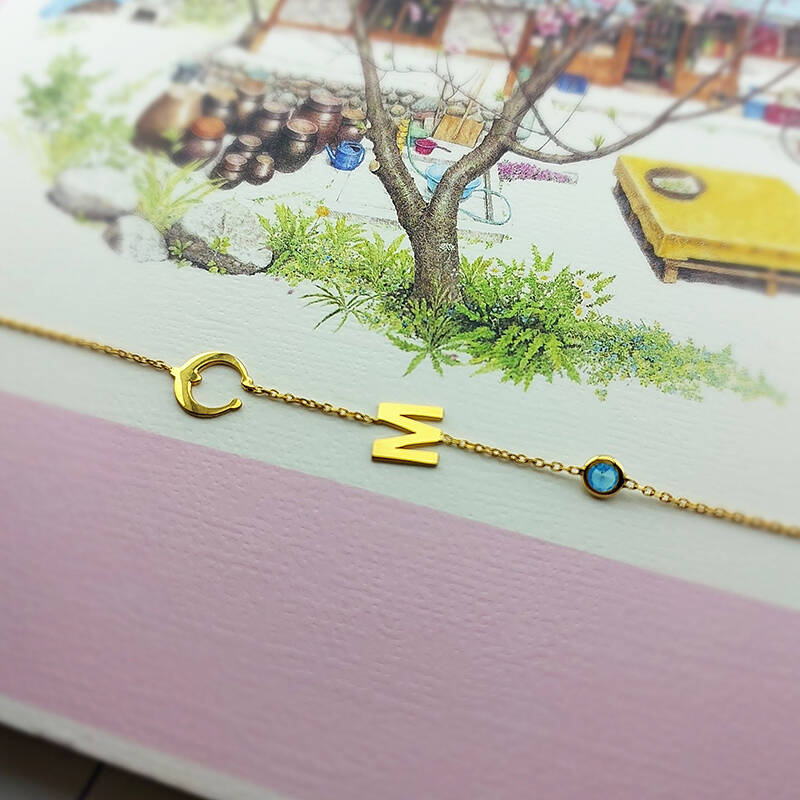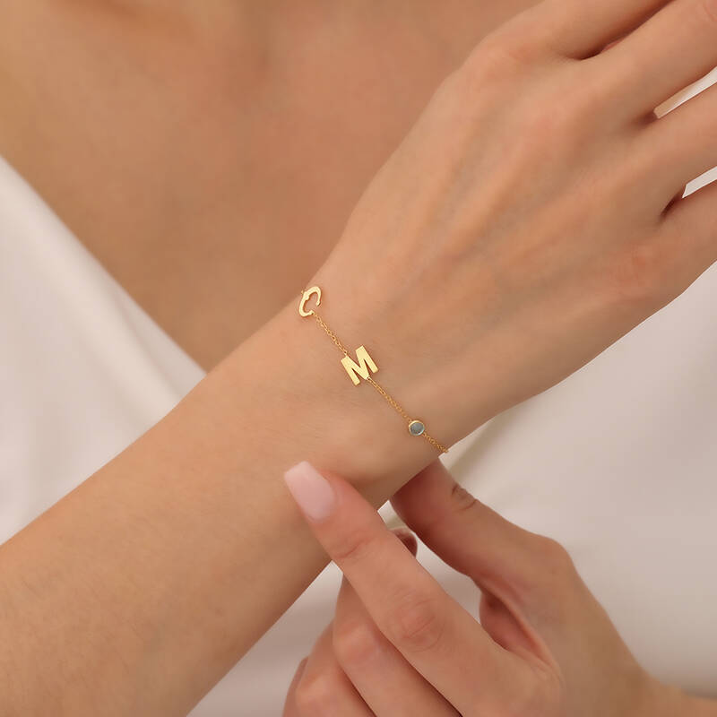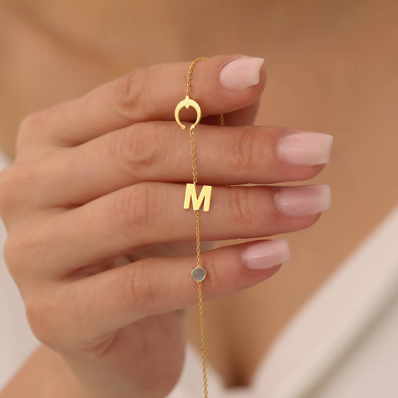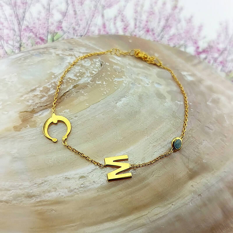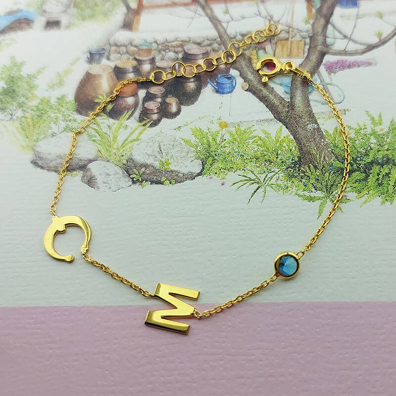 925 Ayar Gümüş Harf ve Nal Taşlı Şans Bileklik