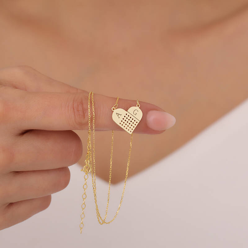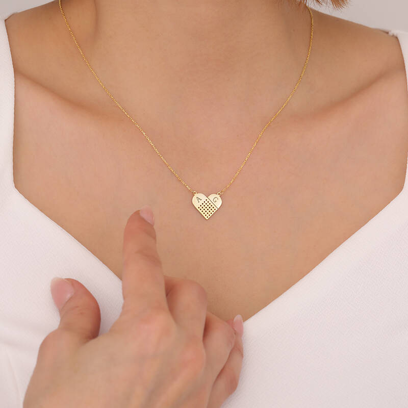 925 Ayar Gümüş Harfli Yara Bandı Kalp Kolye