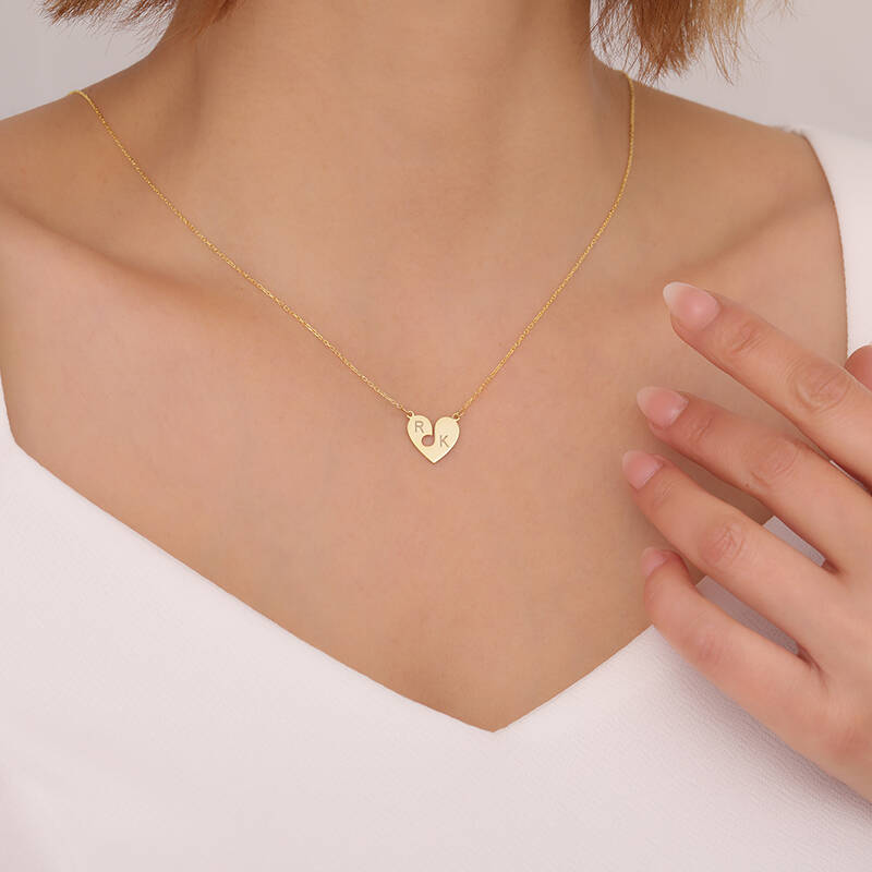 925 Ayar Gümüş İki Harfli Nota Kalp Kolye