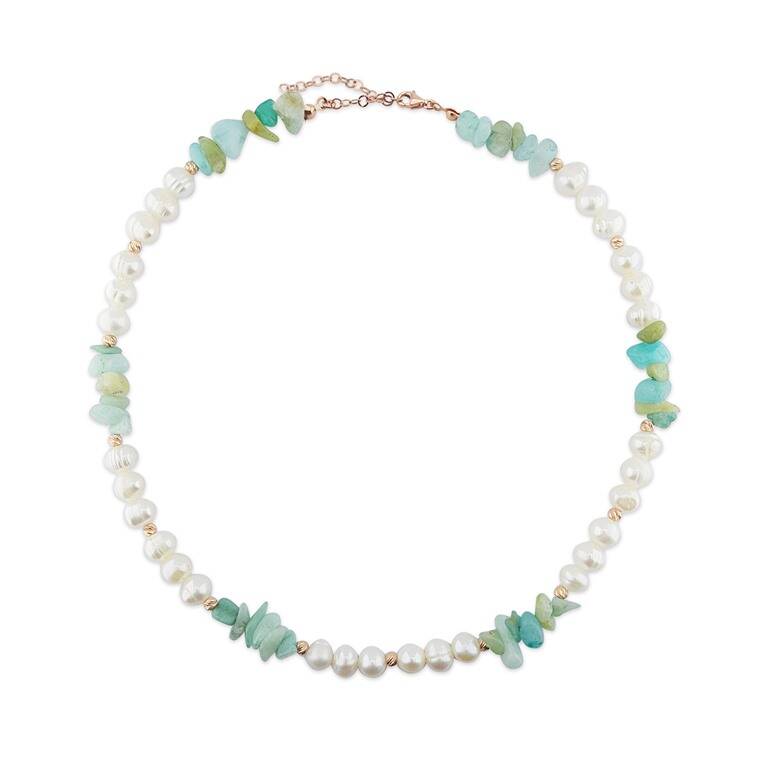 925 Ayar Gümüş İnci ve Amazonit Taşlı Kolye