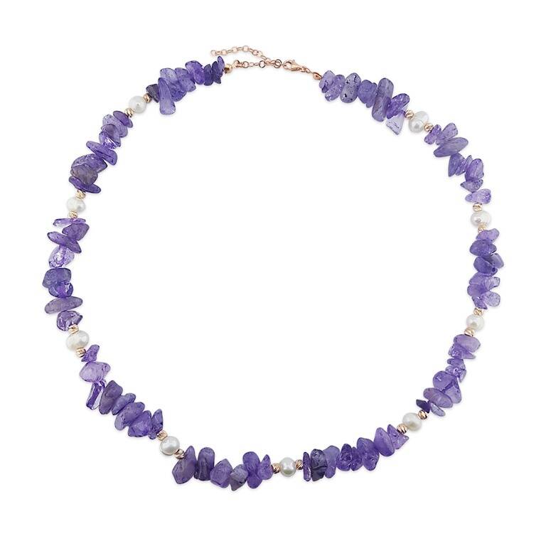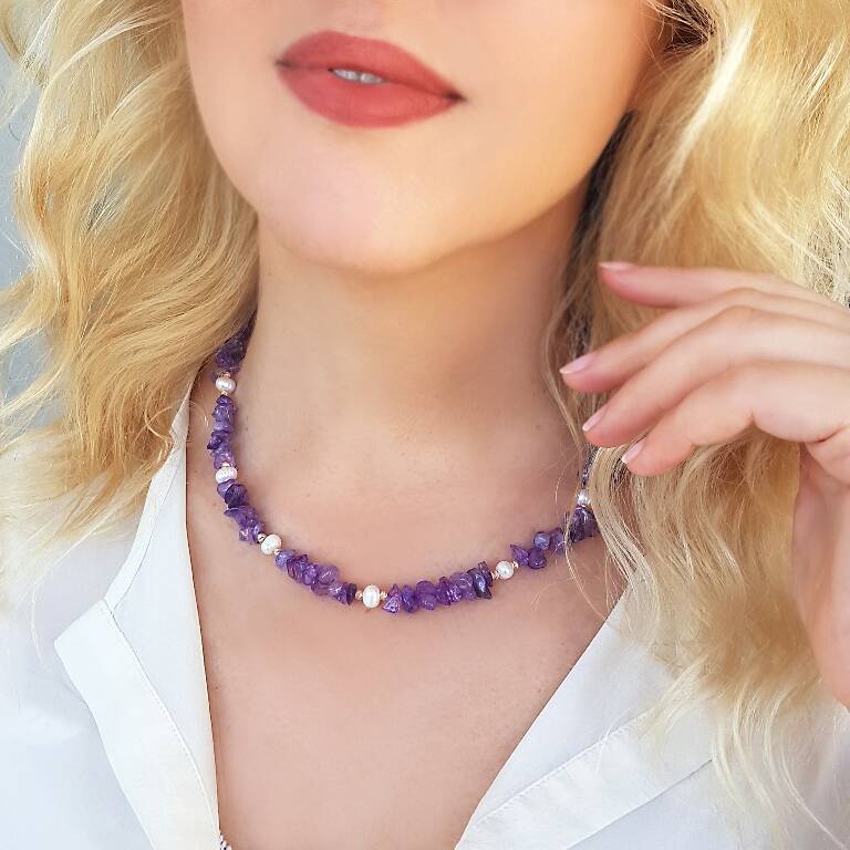 925 Ayar Gümüş İnci ve Ametist Taşlı Kolye
