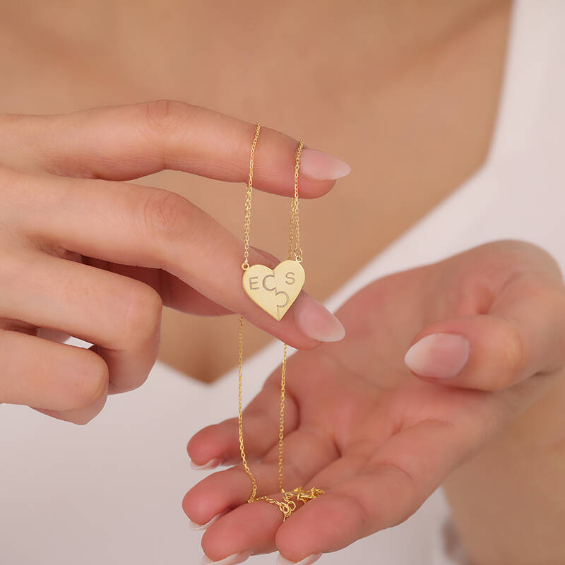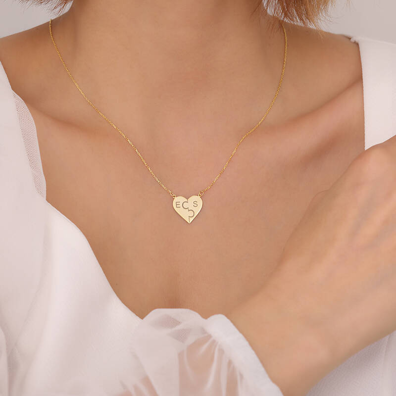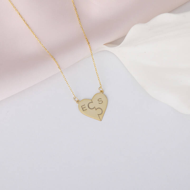 925 Ayar Gümüş Kalp Formunda Puzzle Kolye