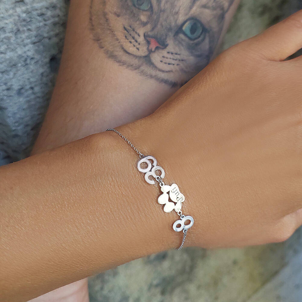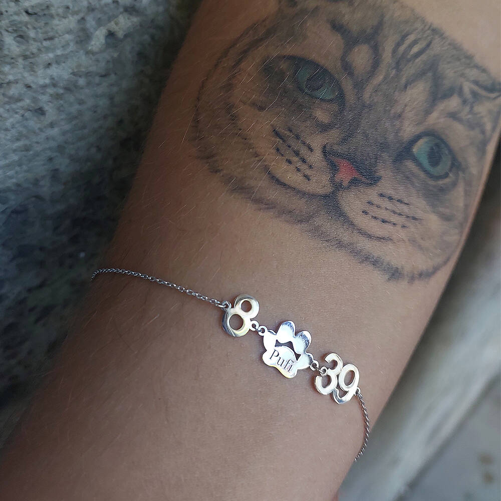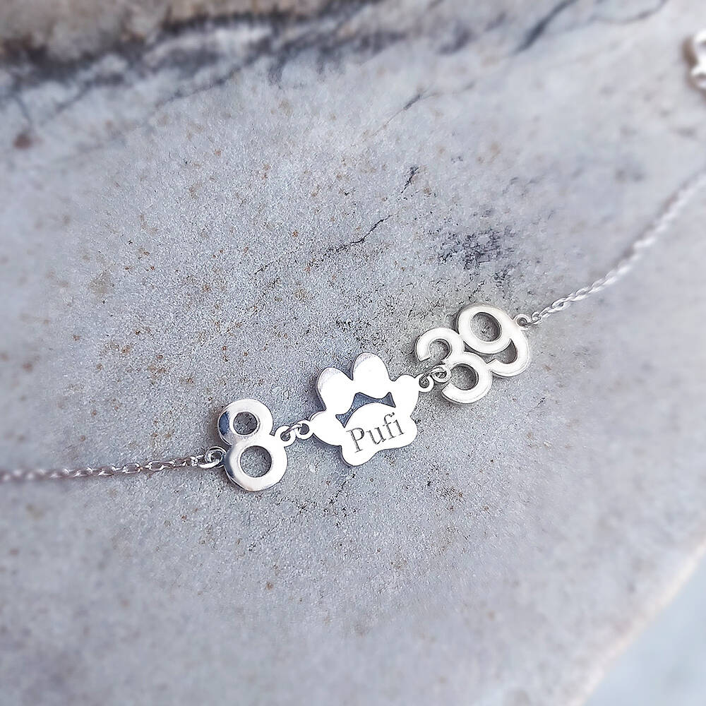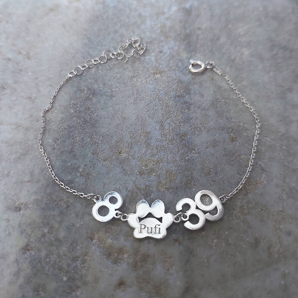 925 Ayar Gümüş Kişiye Özel İsim ve Rakamlı Pati Bileklik