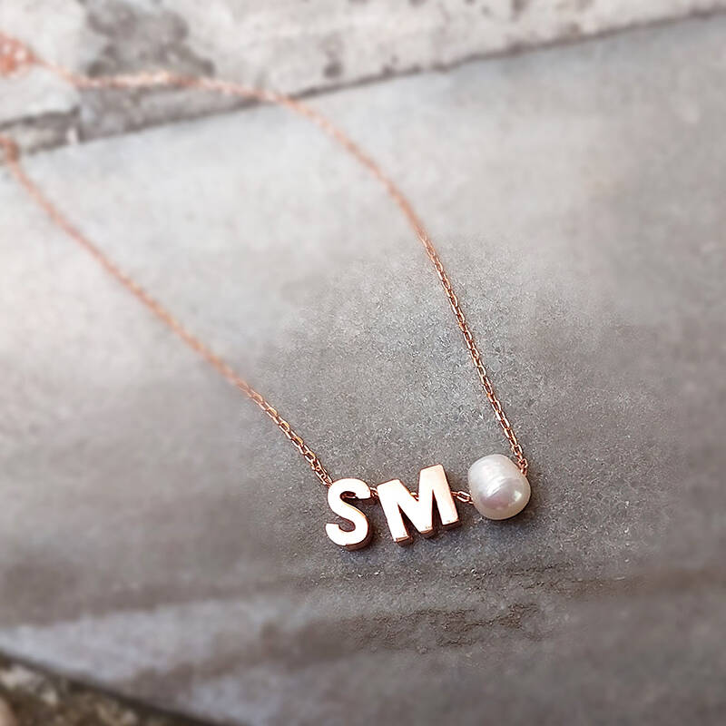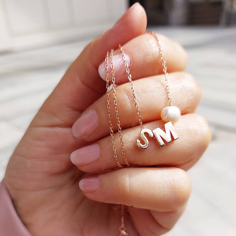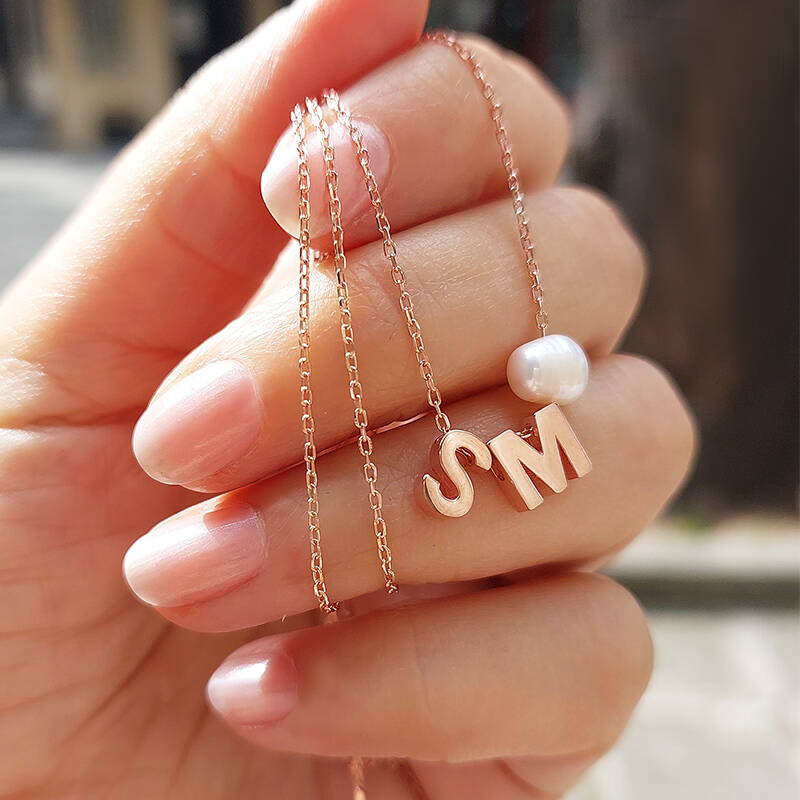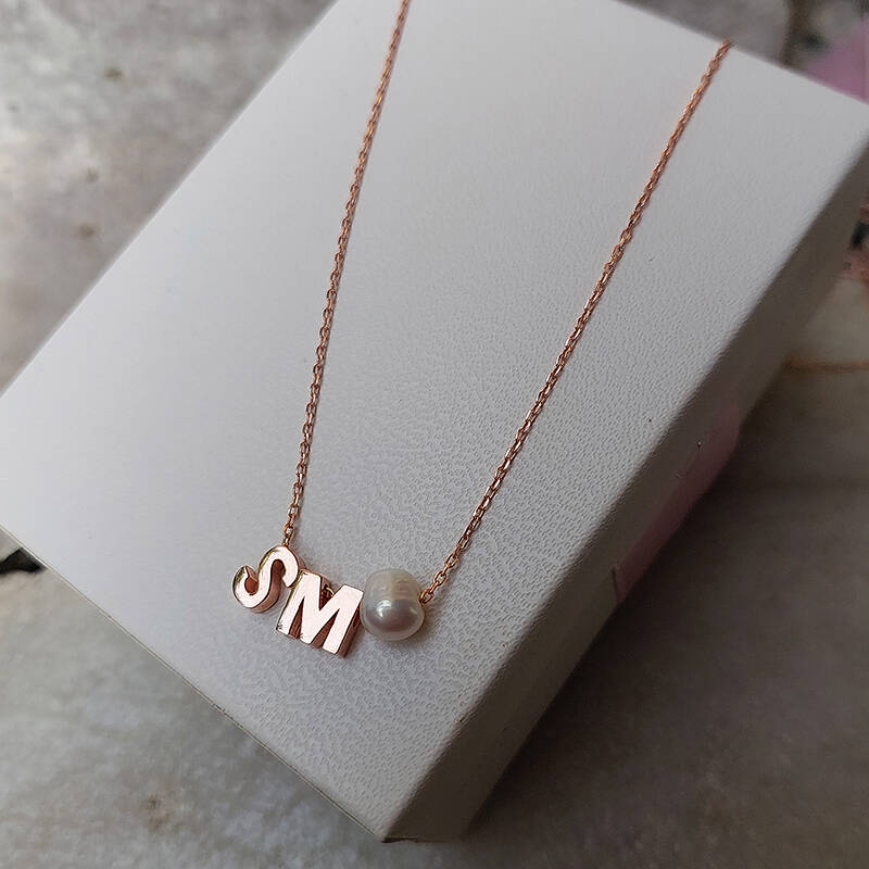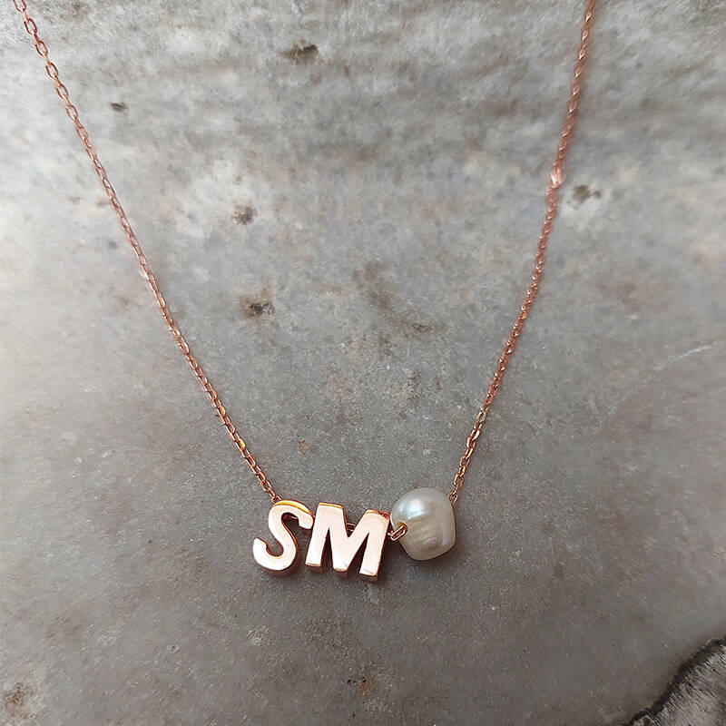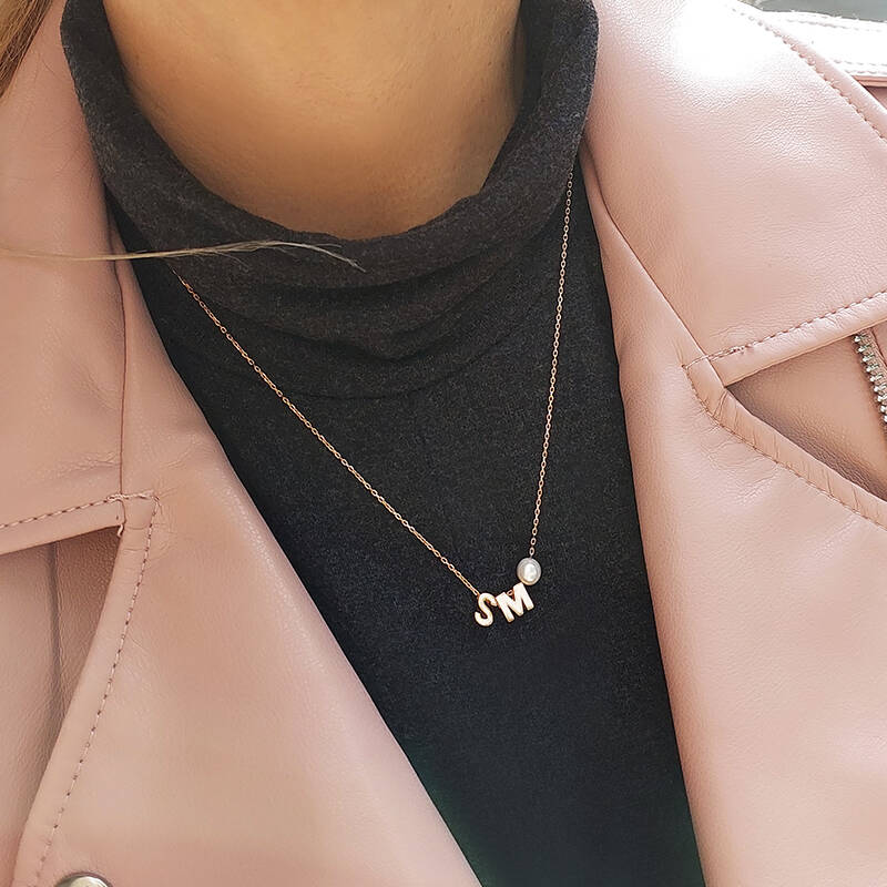 925 Ayar Gümüş Minimal İki Harfli İnci Kolye
