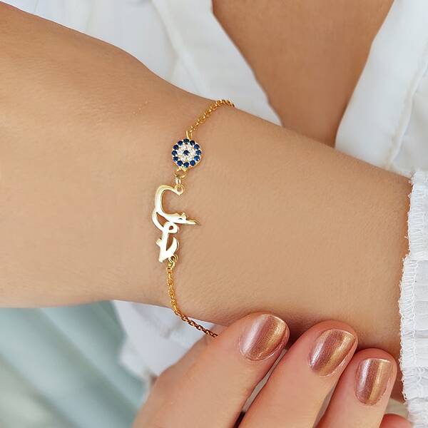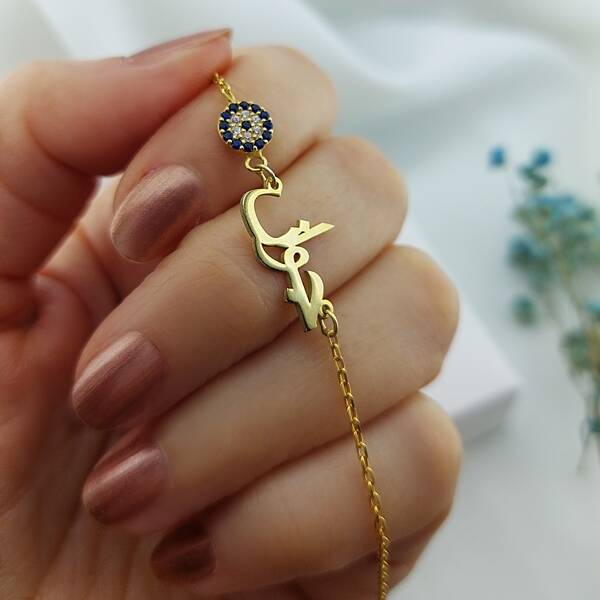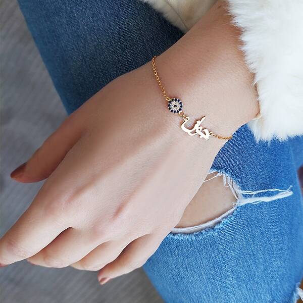 925 Ayar Gümüş Nazarlı Arapça İsim Bileklik