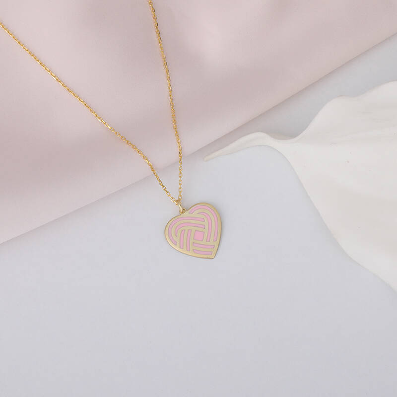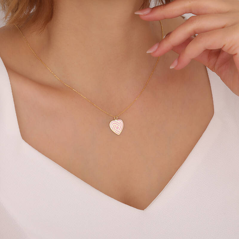 925 Ayar Gümüş Pembe Mineli Spiral Kalp Kolye