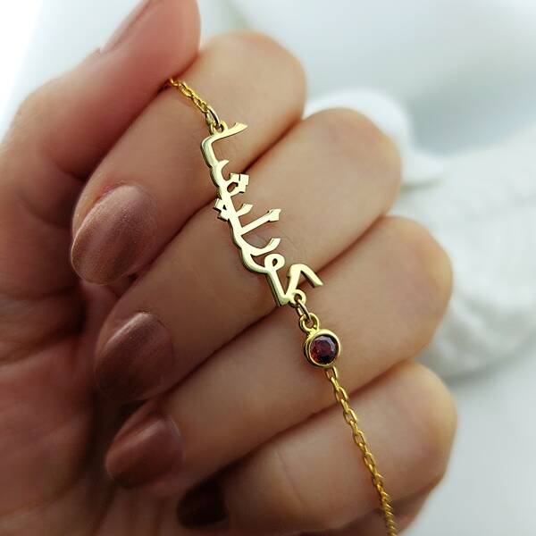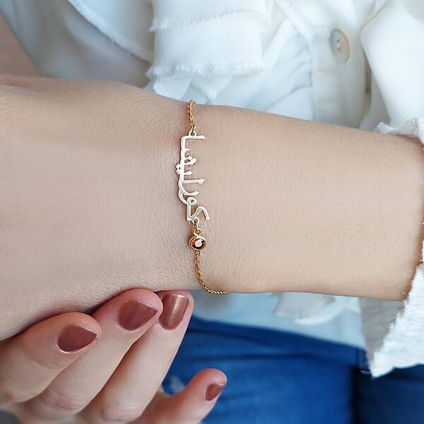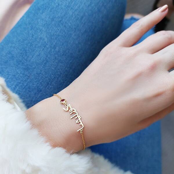 925 Ayar Gümüş Renkli Taşlı Arapça İsim Bileklik