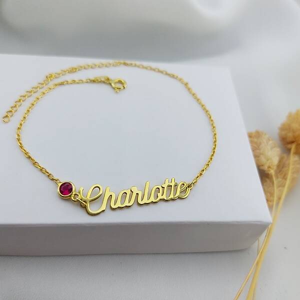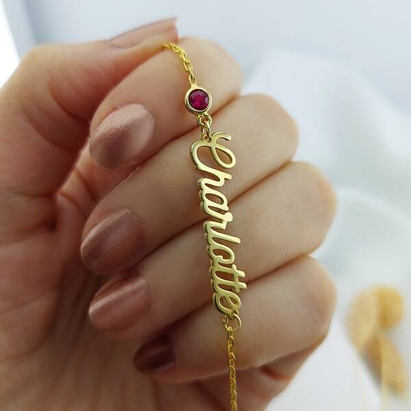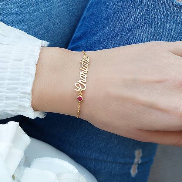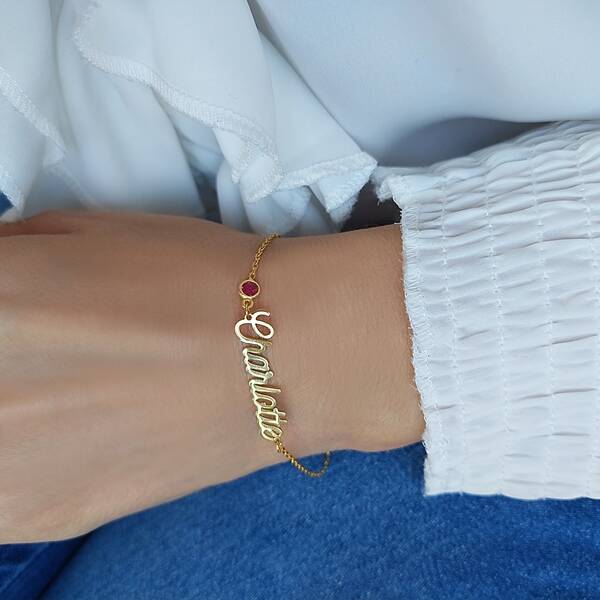 925 Ayar Gümüş Renkli Taşlı İsim Bileklik