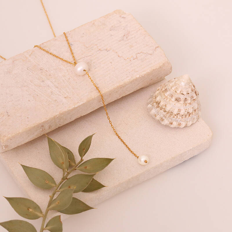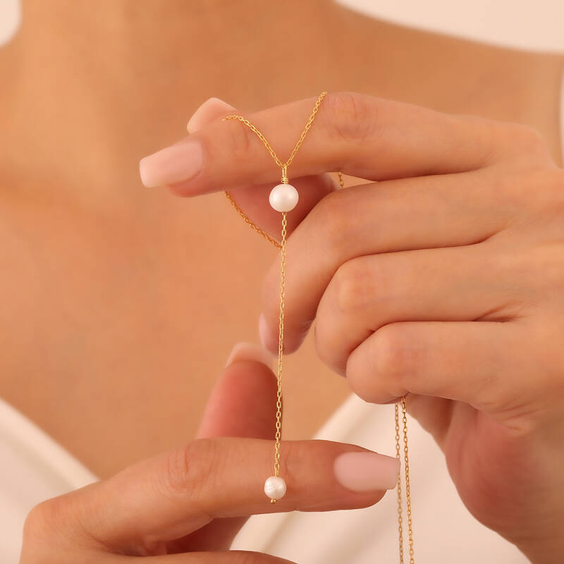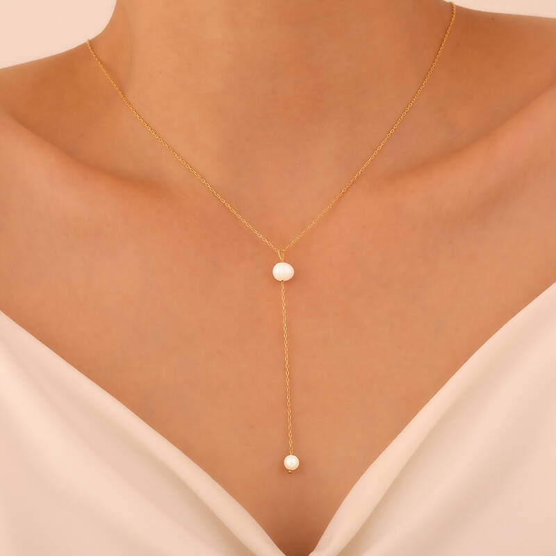 925 Ayar Gümüş Sallantılı Kravat İnci Kolye