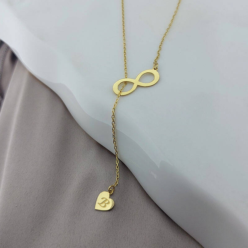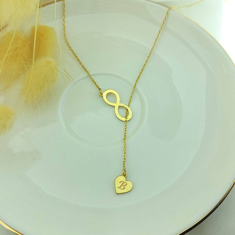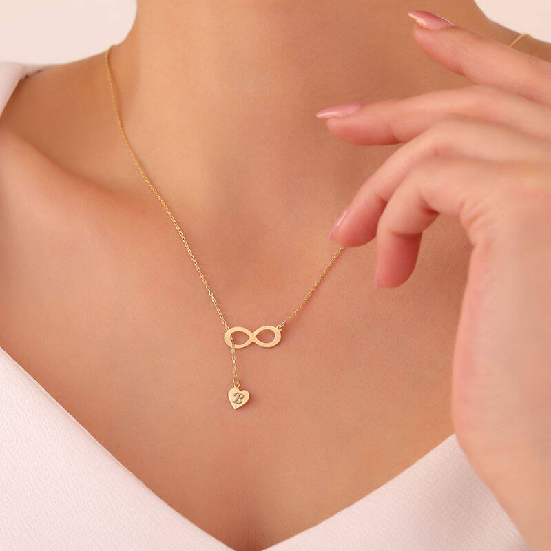 925 Ayar Gümüş Sonsuzluk ve Harfli Kalp Kolye