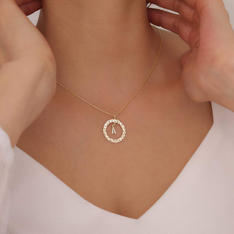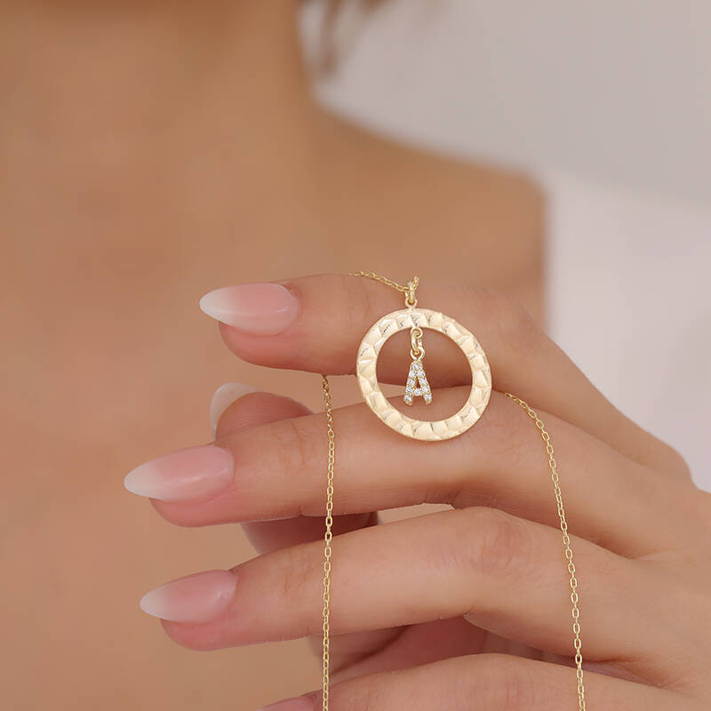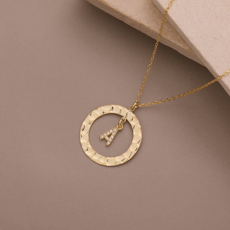 925 Ayar Gümüş Taşlı Harfli Dokulu Çerçeve Kolye