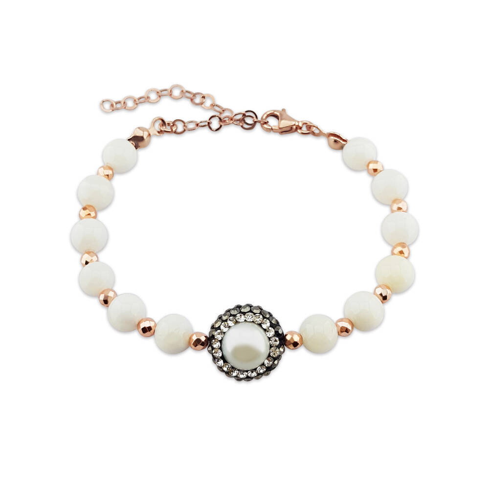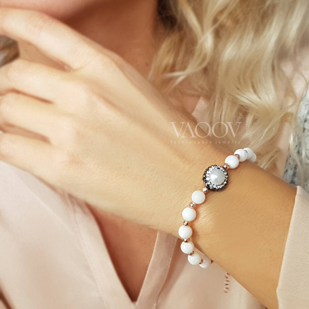 VAOOV 925 Ayar Gümüş İnci ve Kuvars Taşlı Bileklik