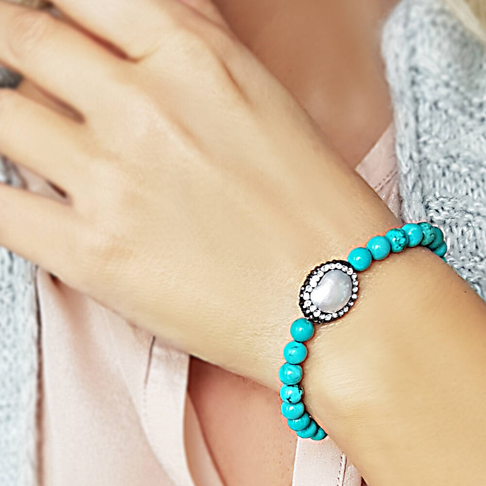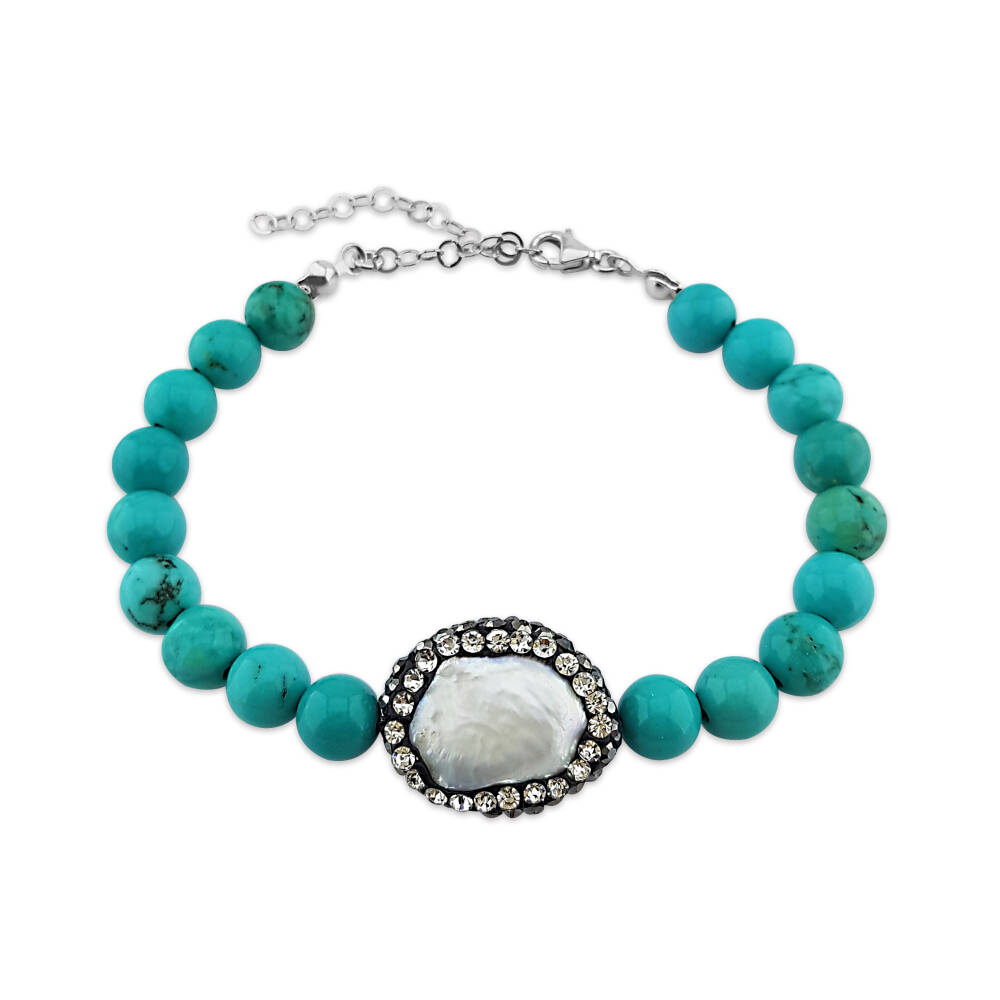 VAOOV 925 Ayar Gümüş İnci ve Firuze Taşlı Bileklik