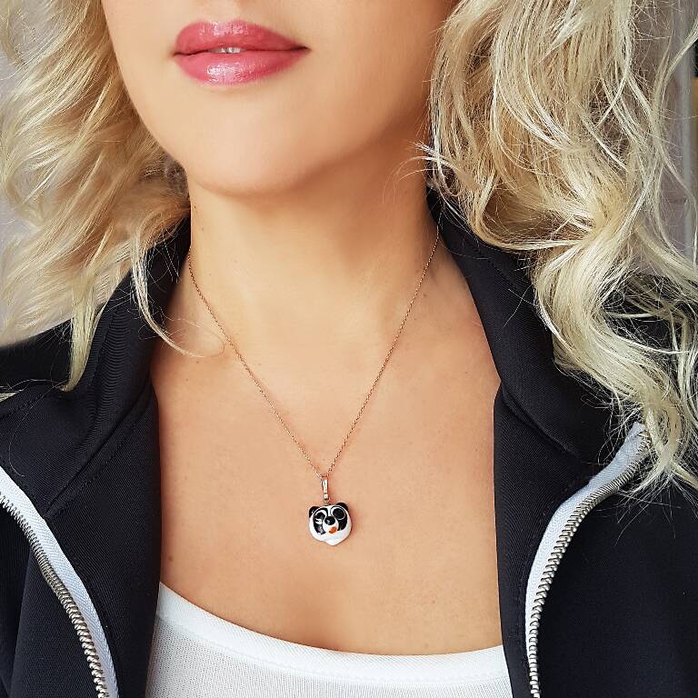 El yapımı murano camı panda kolye