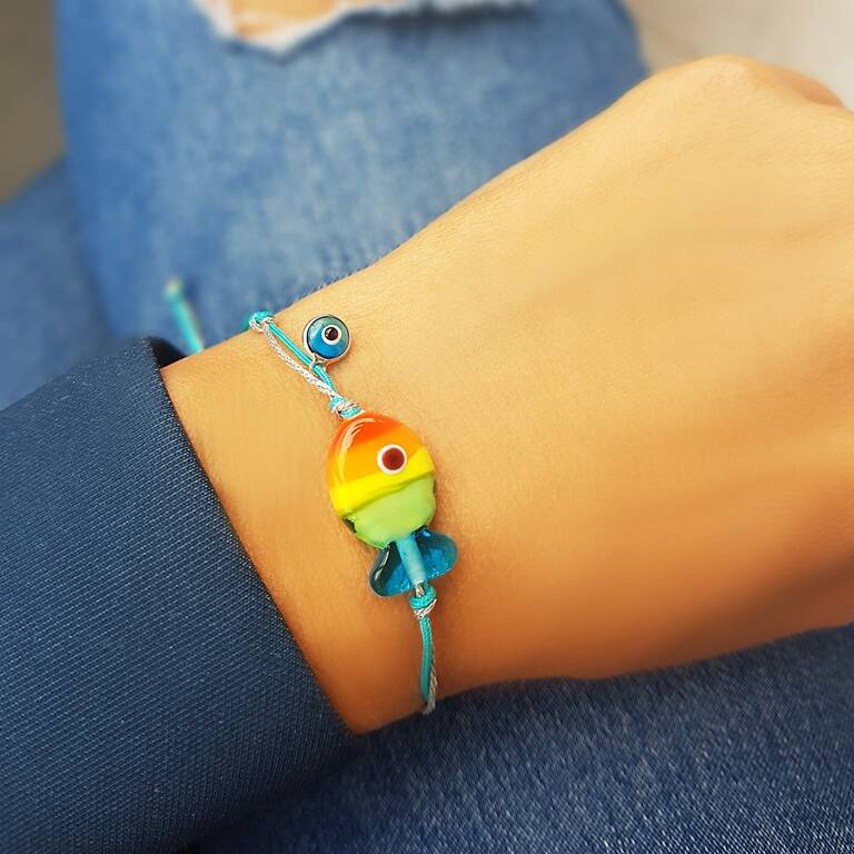 El Yapımı Murano Camı Renkli Balık Bileklik