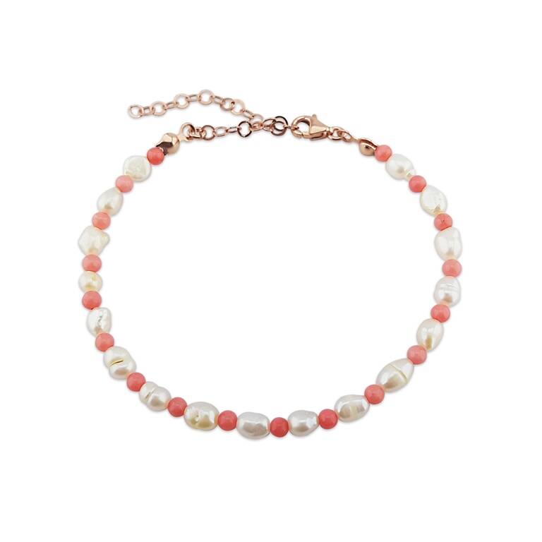 VAOOV 925 Ayar Gümüş İnci ve Mercan Taşlı Bileklik