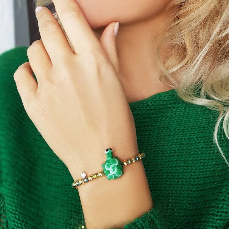 Murano camı Yeşil Kaplumbağa Bileklik