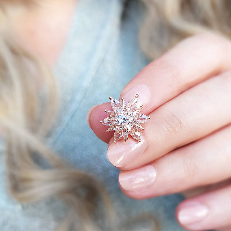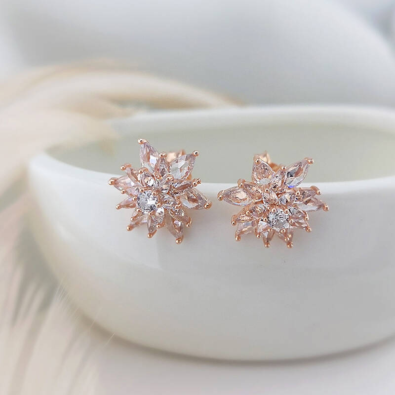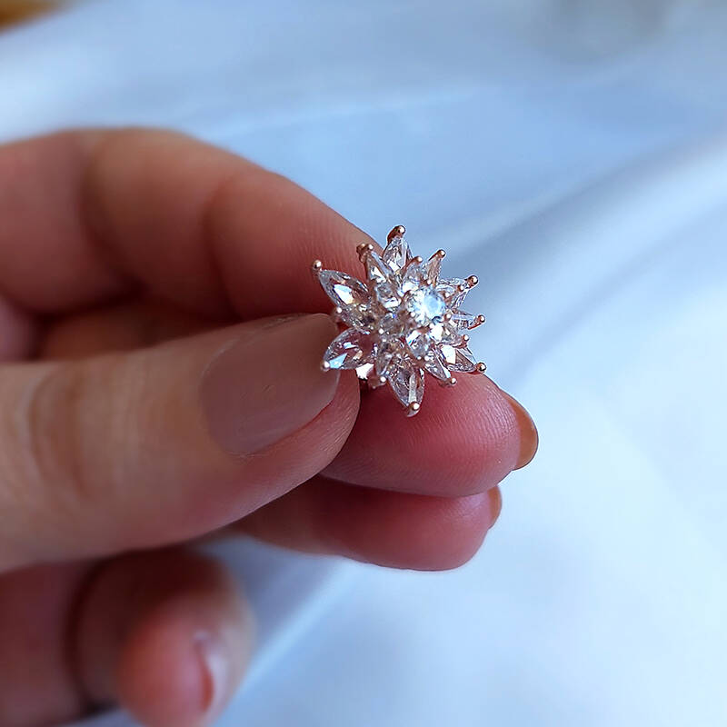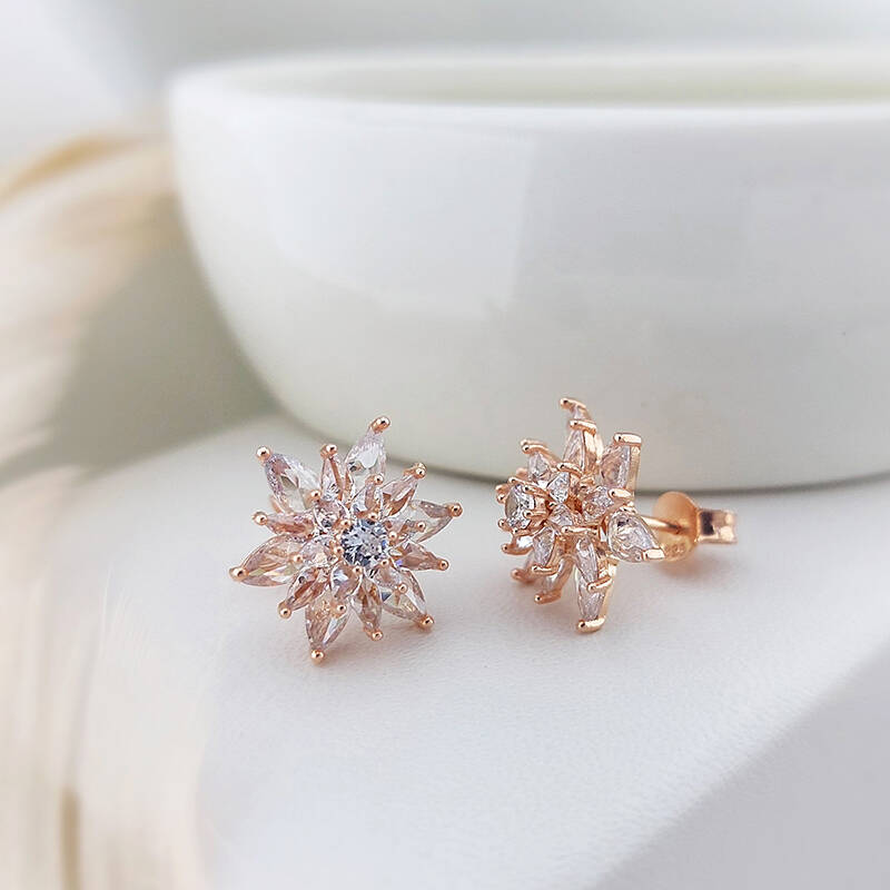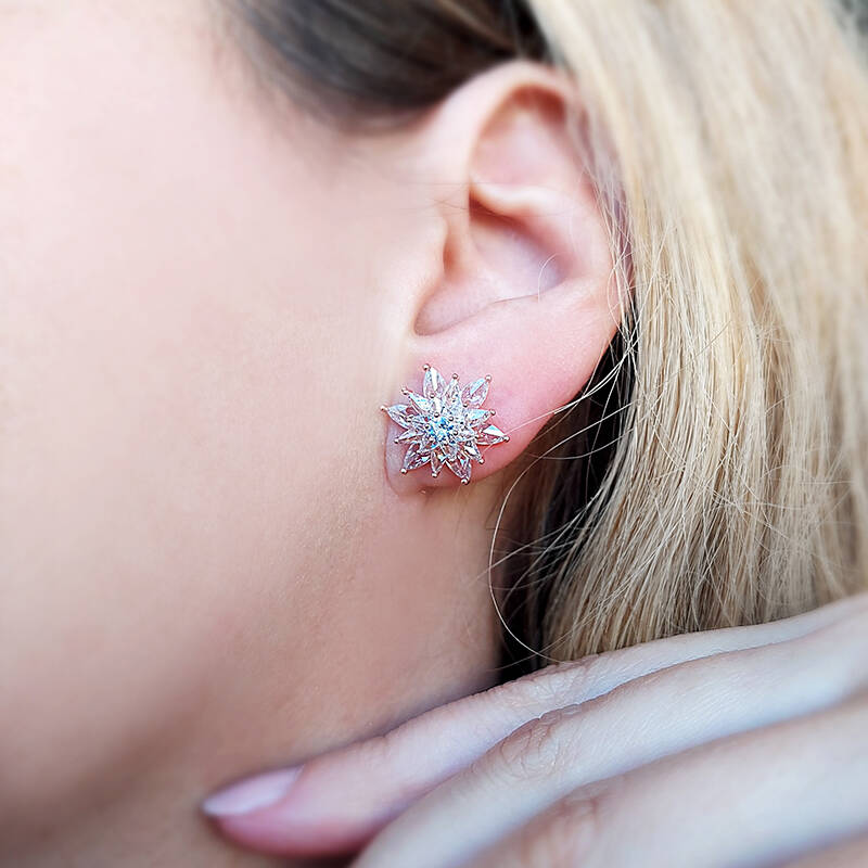 Vaoov 925 Ayar Gümüş Beyaz Taşlı Lotus Çiçeği Küpe