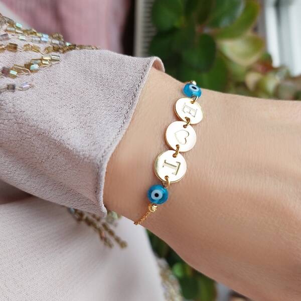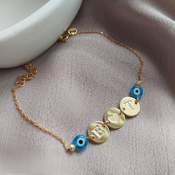 925 Ayar Gümüş Taşlı Kalp ve Harf Bileklik