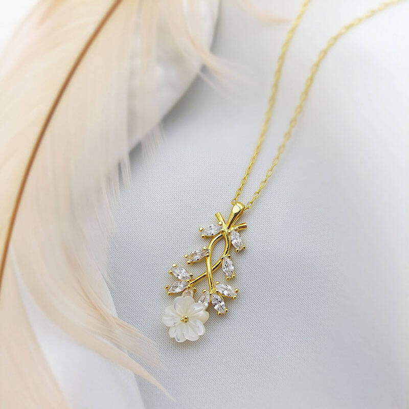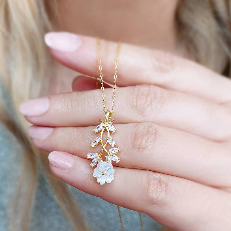 Vaoov 925 Ayar Gümüş Çiçekli Bahar Dalı Kolye