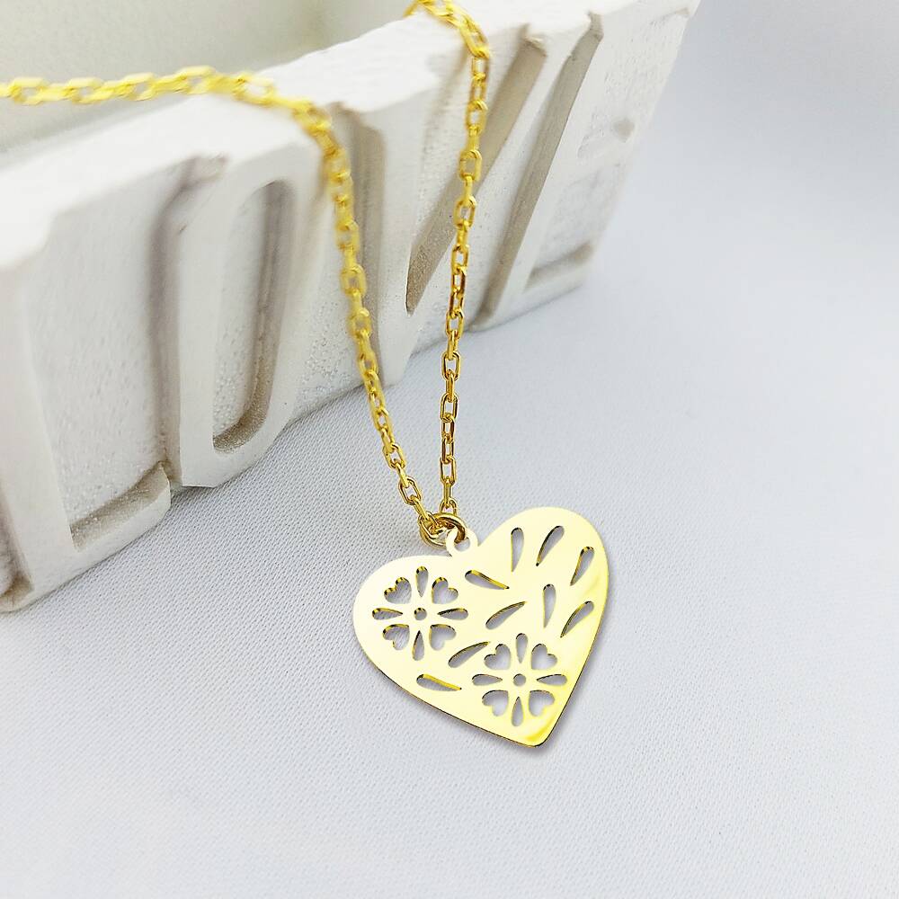 Vaoov 925 Ayar Gümüş Çiçekli Kalp Kolye