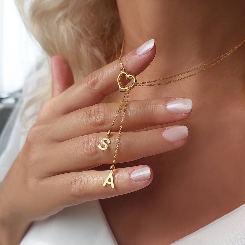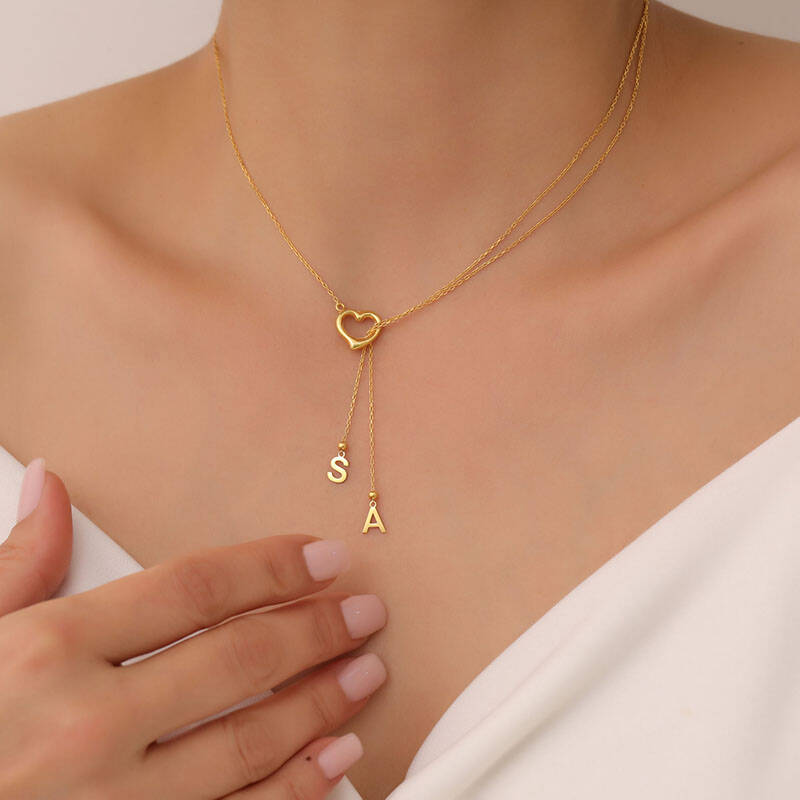 Vaoov 925 Ayar Gümüş Çift Harfli Sallantılı Kalp Kolye