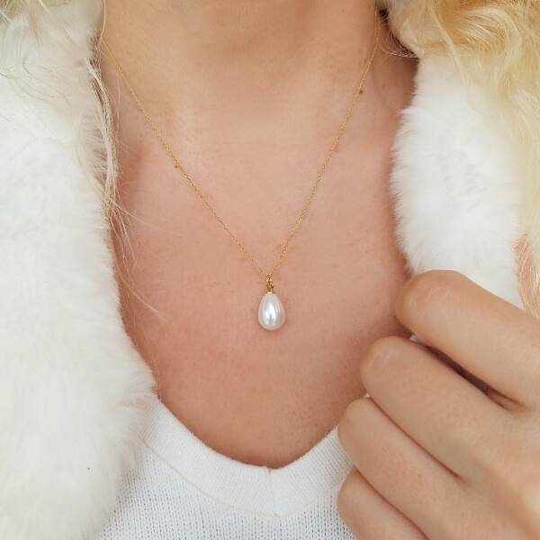 Damla şeklinde gerçek mayorka incisi kullanılmıştır.