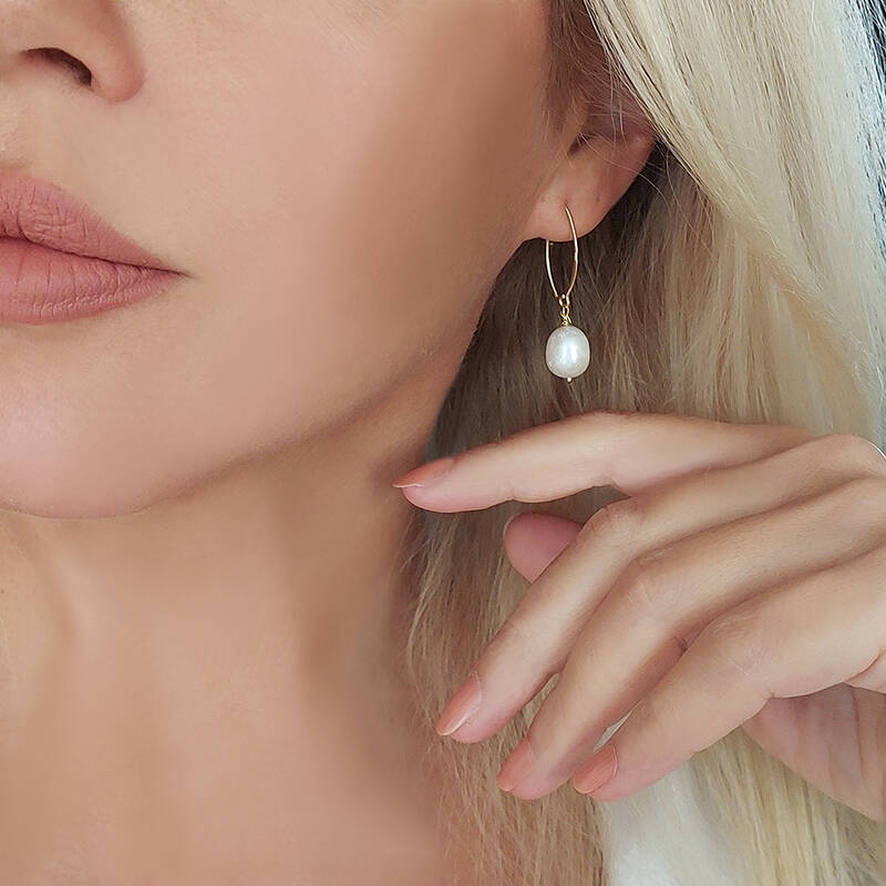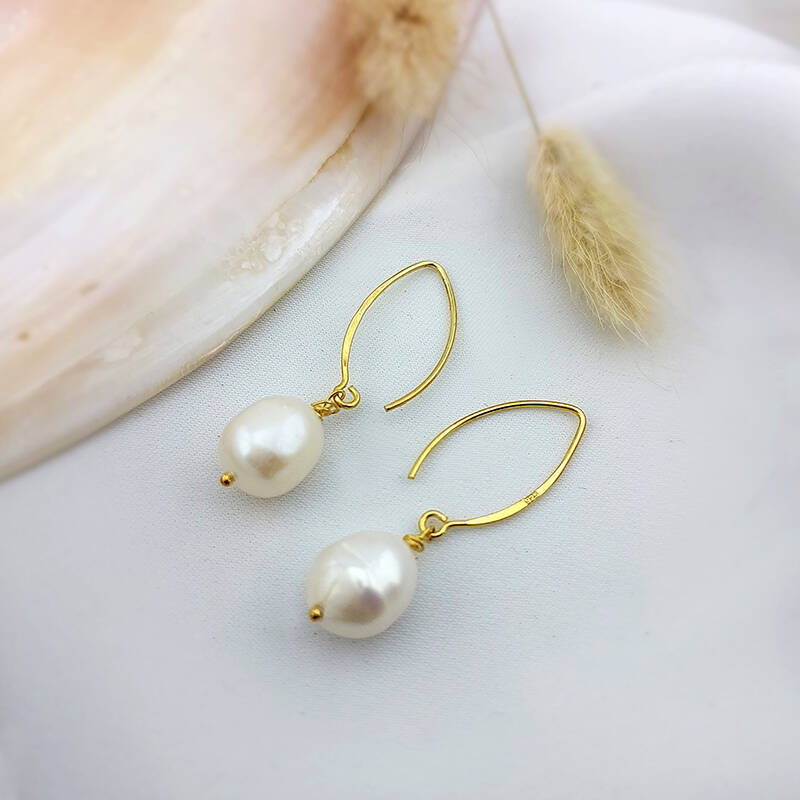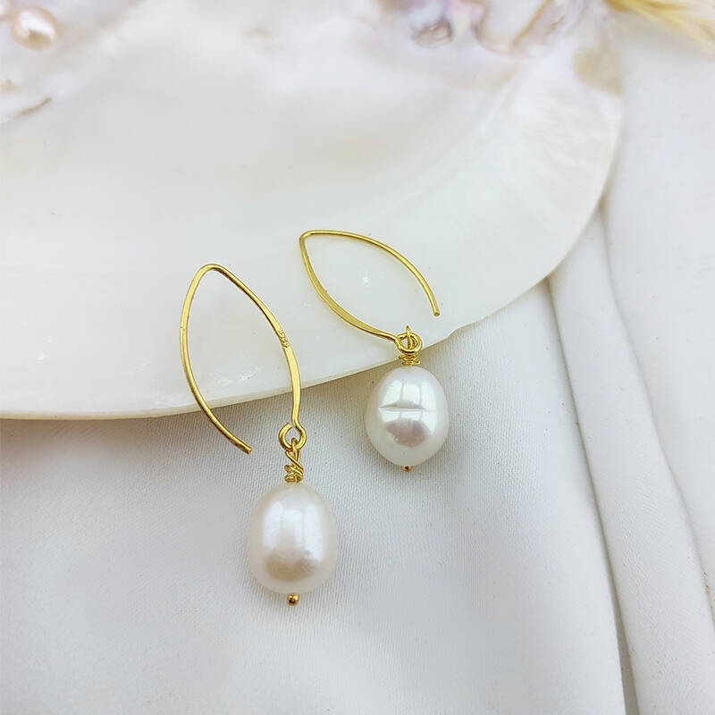 Vaoov 925 Ayar Gümüş Doğal Gerçek İnci Küpe