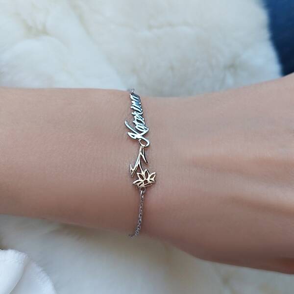 Vaoov 925 Ayar Gümüş Doğum Çiçeği İsimli Bileklik