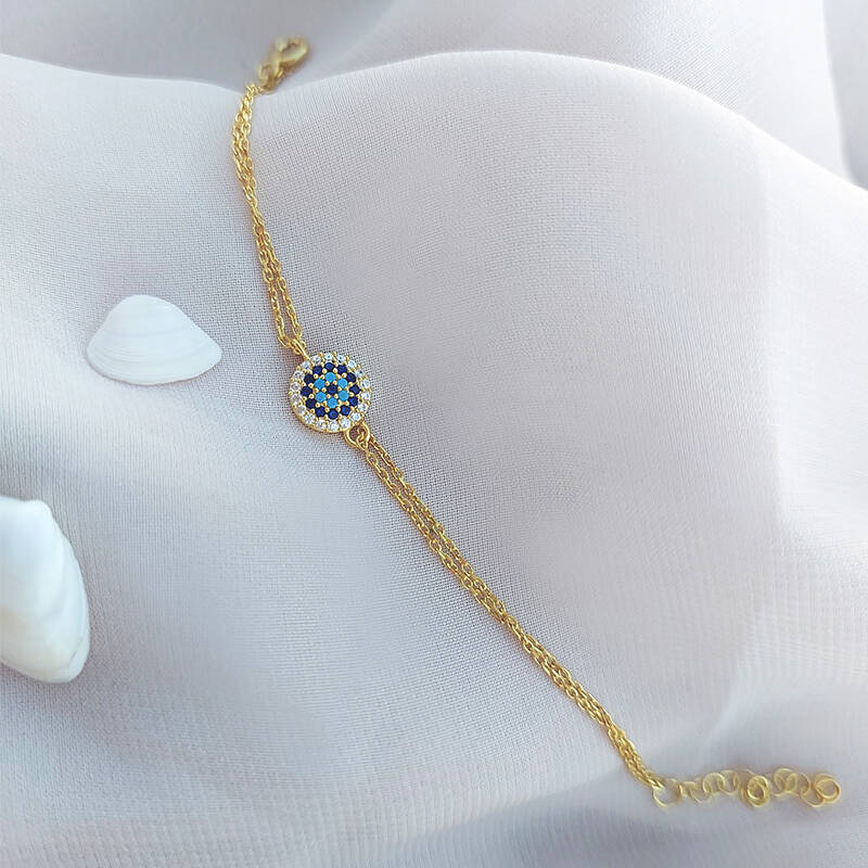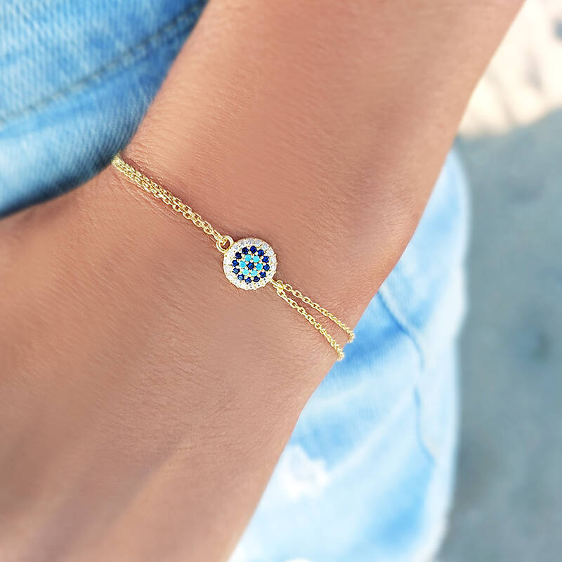 Vaoov 925 Ayar Gümüş Gold Çoklu Nazar Bileklik