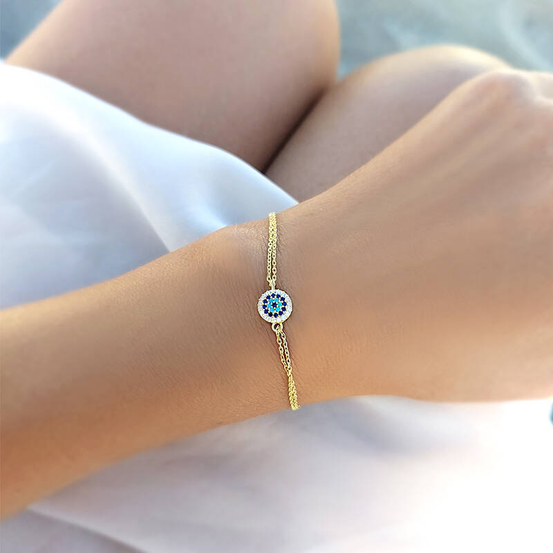 Vaoov 925 Ayar Gümüş Gold Nazar Bileklik