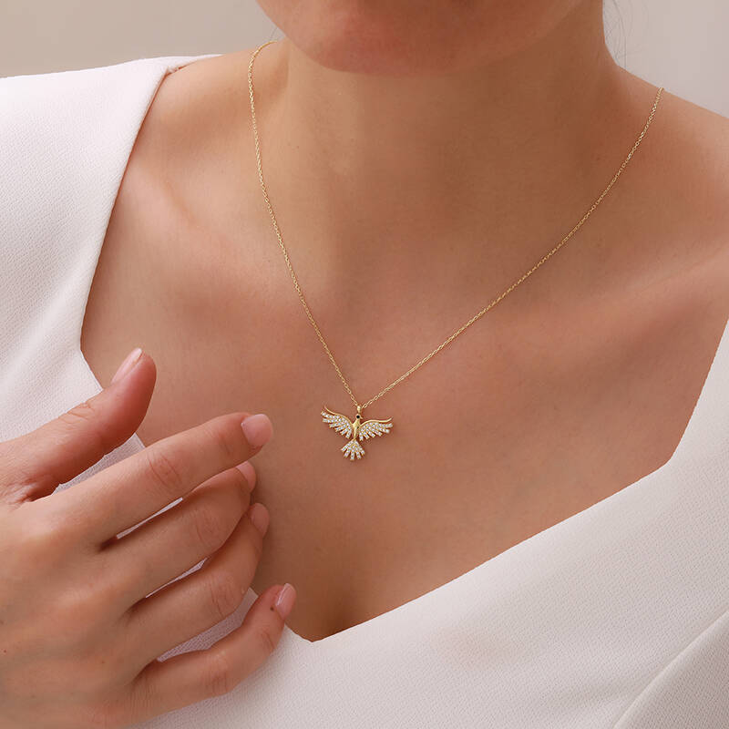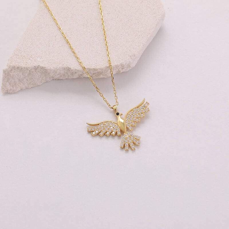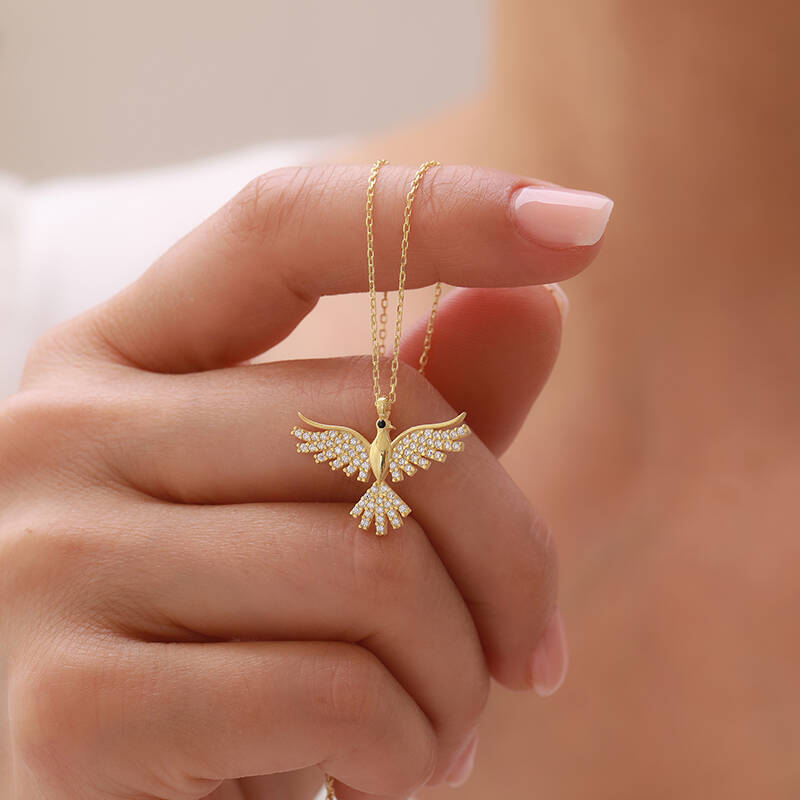 Vaoov 925 Ayar Gümüş Gold Taşlı Anka Kuşu Kolye