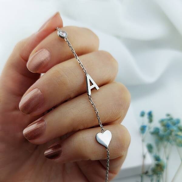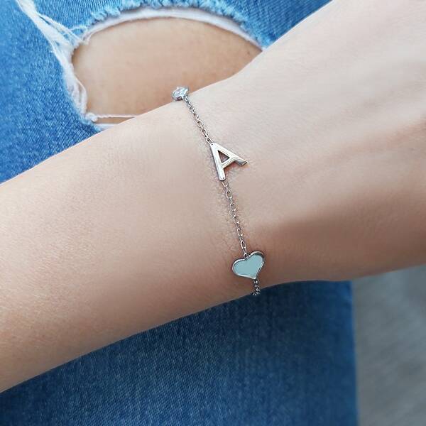 925 Ayar Gümüş Taşlı Kalp ve Harf Bileklik