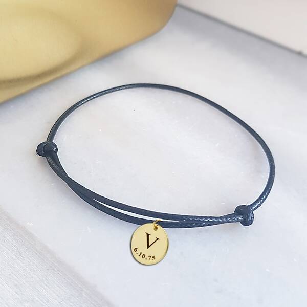 Vaoov 925 Ayar Gümüş Harf ve Tarihli İp Erkek Bileklik