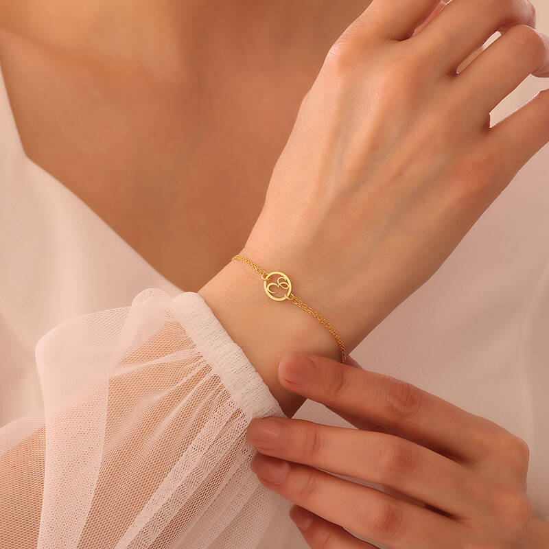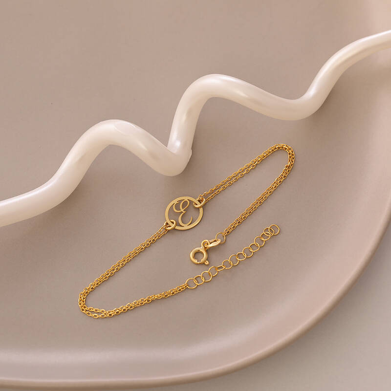 Vaoov 925 Ayar Gümüş Harfli Çift Zincirli Bileklik