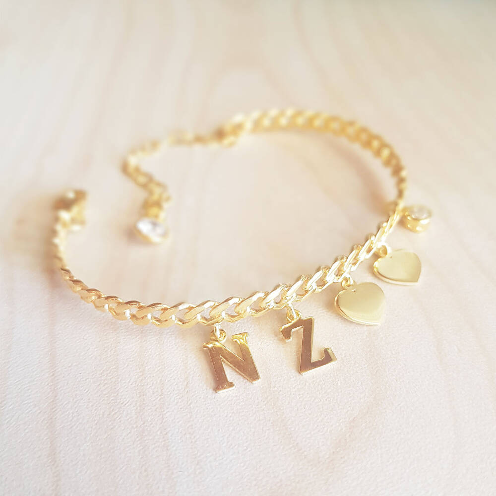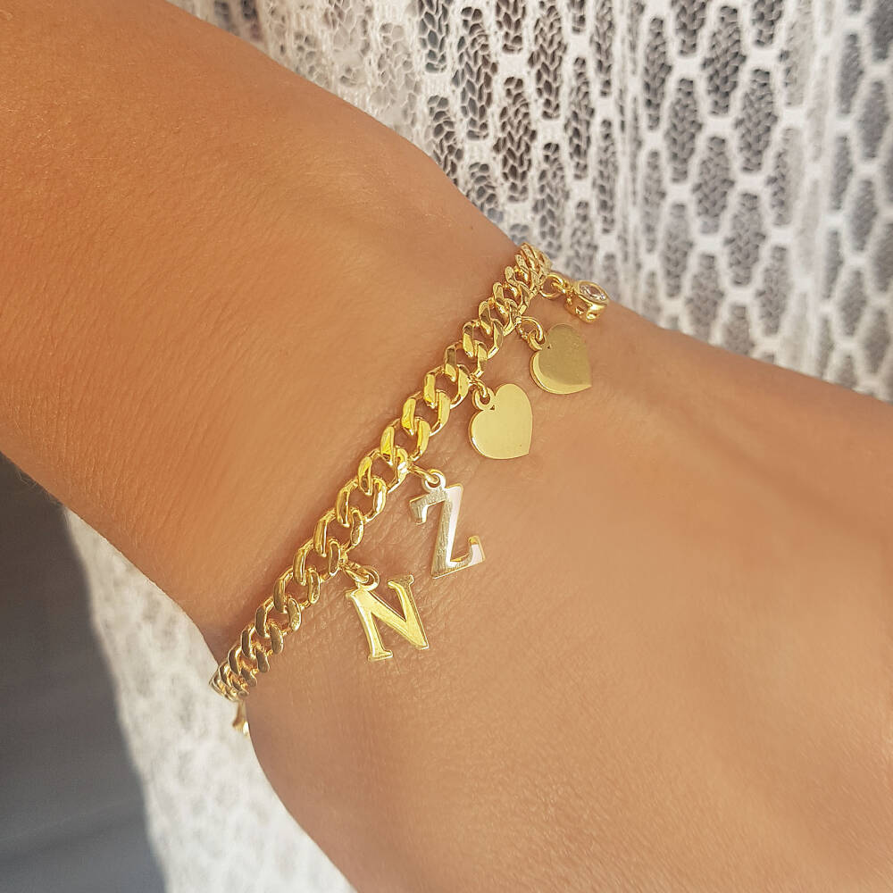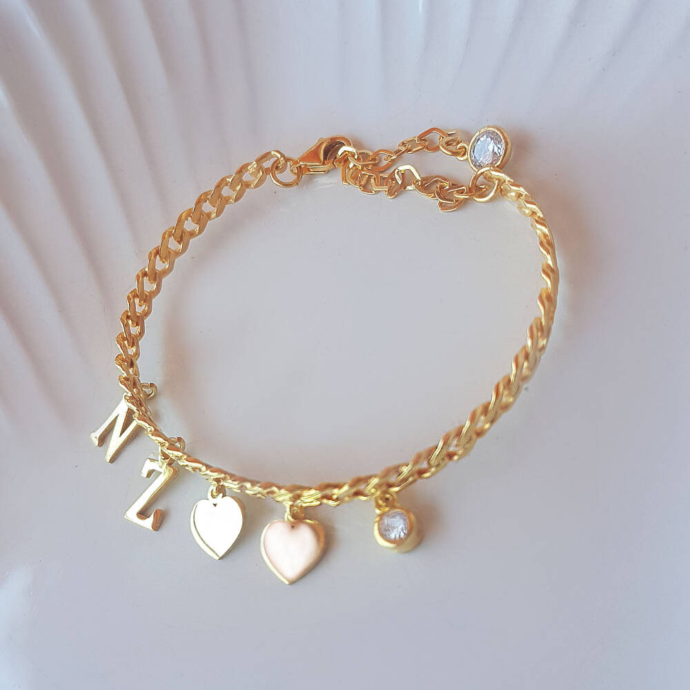 925 Ayar Gümüş Taşlı Kalp ve Harf Bileklik
