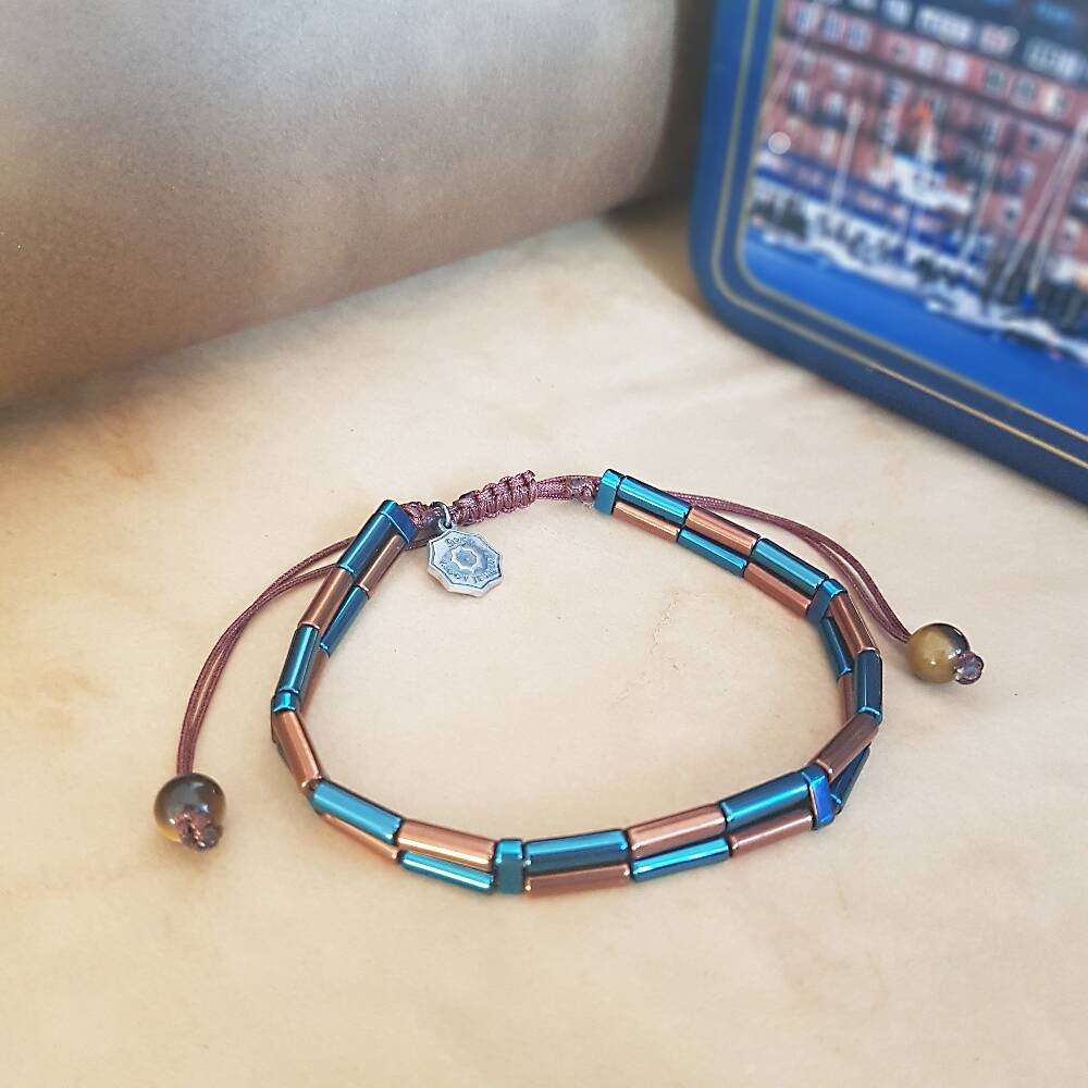 Vaoov 925 Ayar Gümüş Lapis ve Hematit Taşlı Çapa Erkek Bileklik