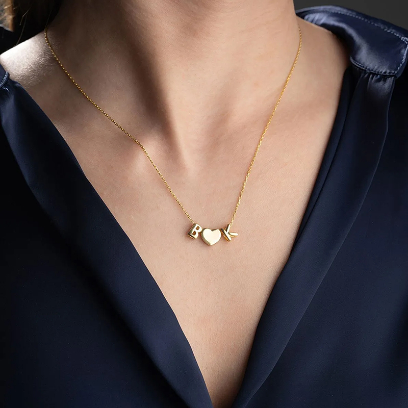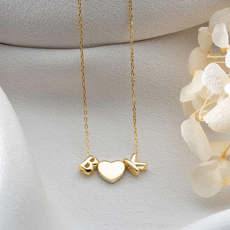 Vaoov 925 Ayar Gümüş Kalp ve İki Harfli Hediye Kolye