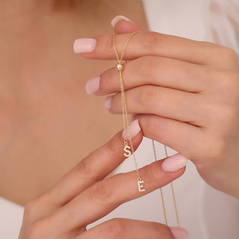 Vaoov 925 Ayar Gümüş İki Harfli Sallantılı Kolye