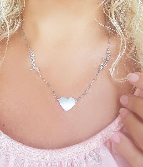 Vaoov 925 Ayar Gümüş İki İsimli Kalp Kolye