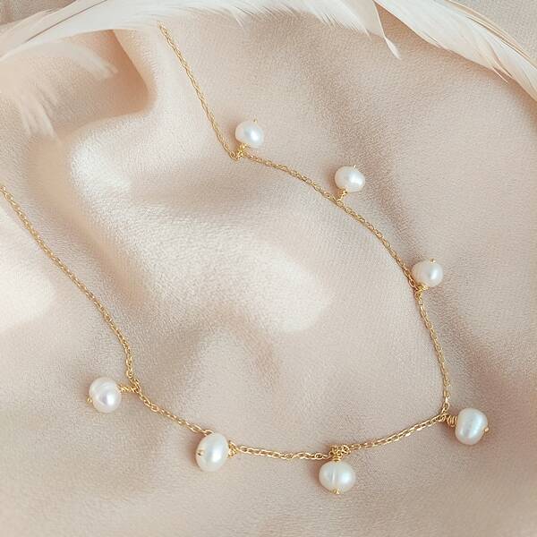 925 Ayar Gümüş İnci Sallantılı Kolye