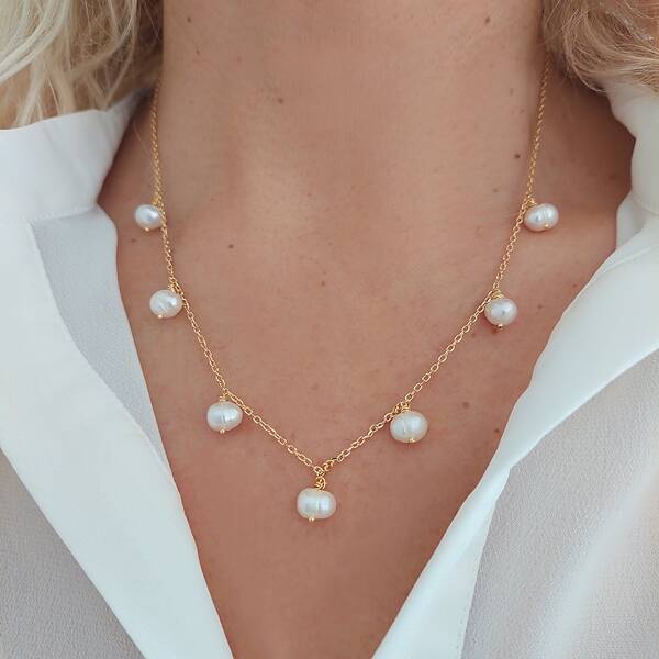 Vaoov 925 Ayar Gümüş Köşeli Zincirli İnci Kolye
