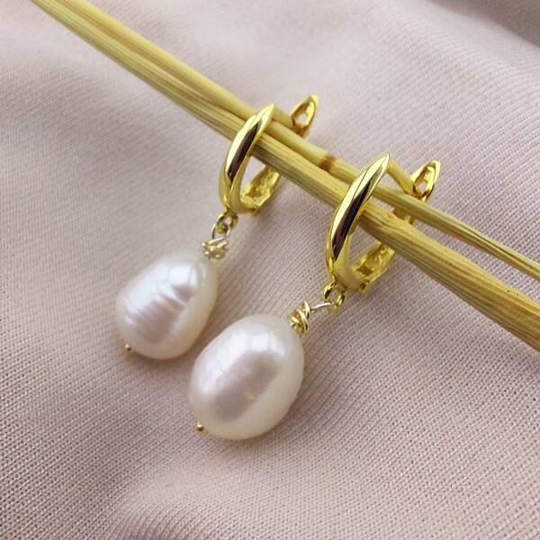 Vaoov 925 Ayar Gümüş Sallantılı Taşlı Gold İnci Küpe