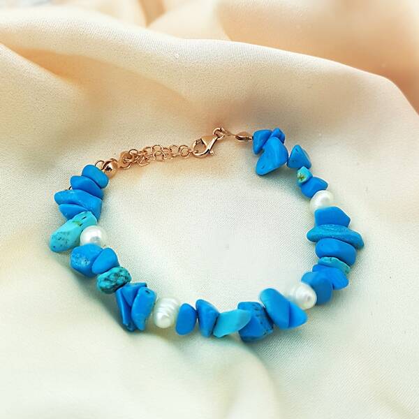 VAOOV 925 Ayar Gümüş İnci ve Firuze Taşlı Bileklik