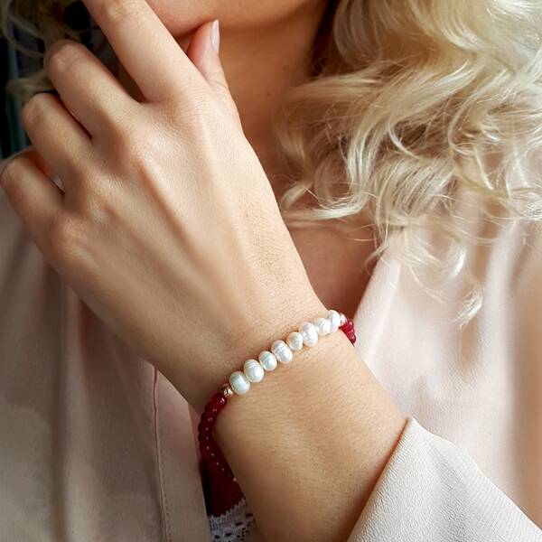 VAOOV 925 Ayar Gümüş İnci ve Mercan Taşlı Bileklik