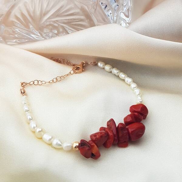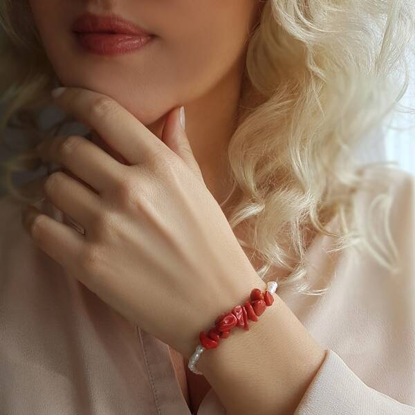 VAOOV 925 Ayar Gümüş İnci ve Mercan Taşlı Bileklik