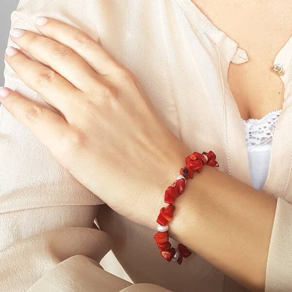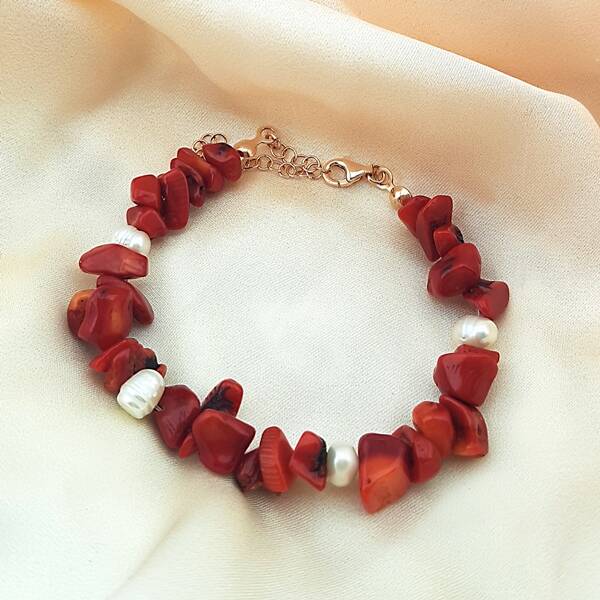 VAOOV 925 Ayar Gümüş İnci ve Mercan Taşlı Bileklik